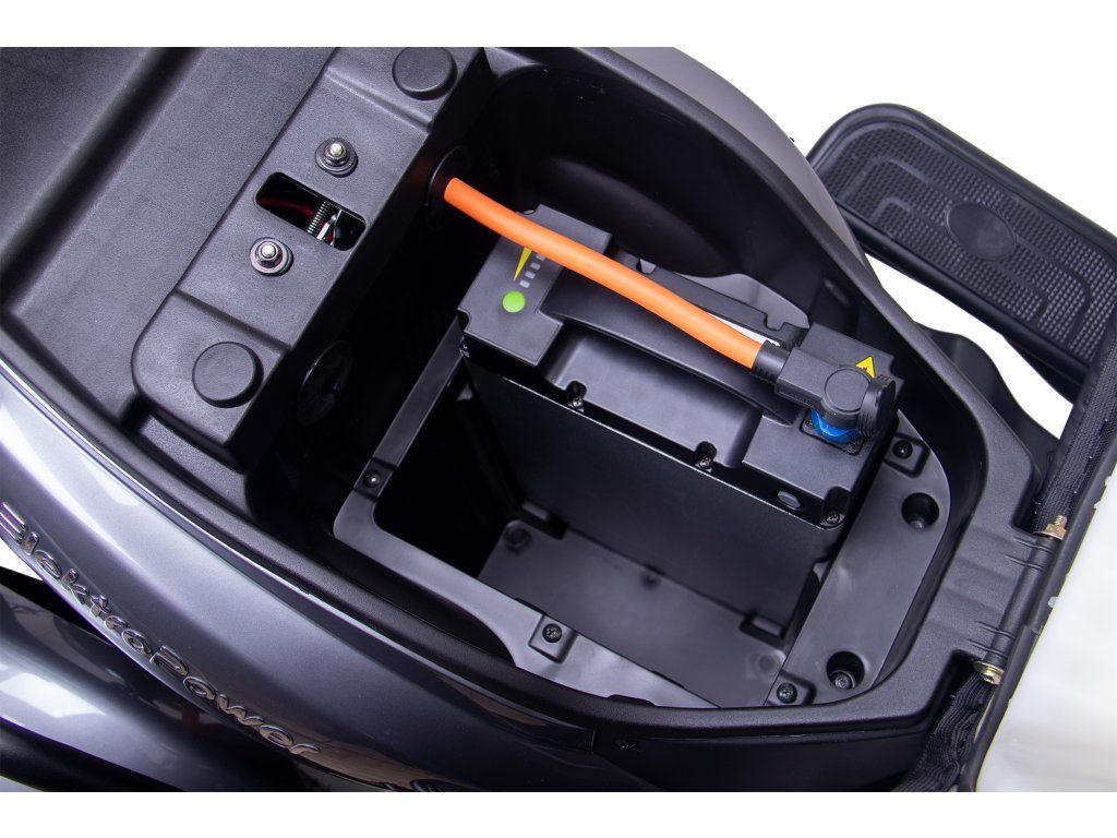 Prostor pod sedlem skrývá bonus, který oceníte při delších výletech: lze zde umístit druhou baterii a zdvojit tak dojezd. Nebo prostor využít jako praktické úložiště pro osobní věci.